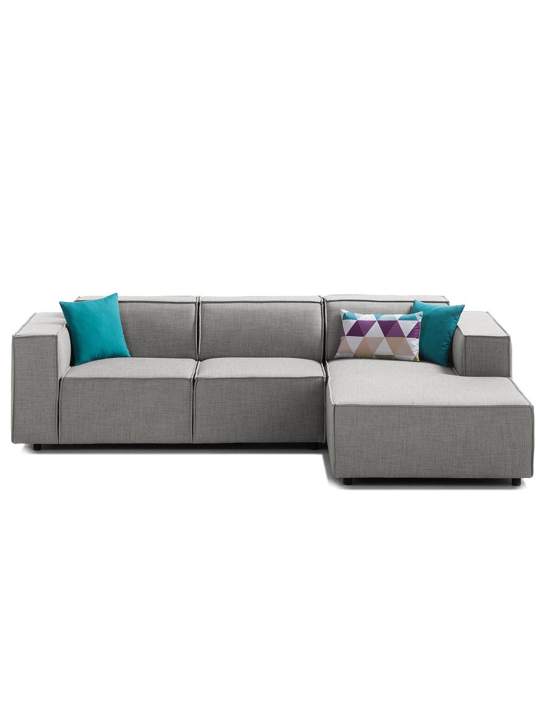Olimpo - Sofá esquinero estilo moderno en tela color gris claro